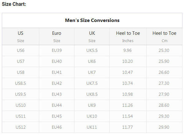 Size Chart: