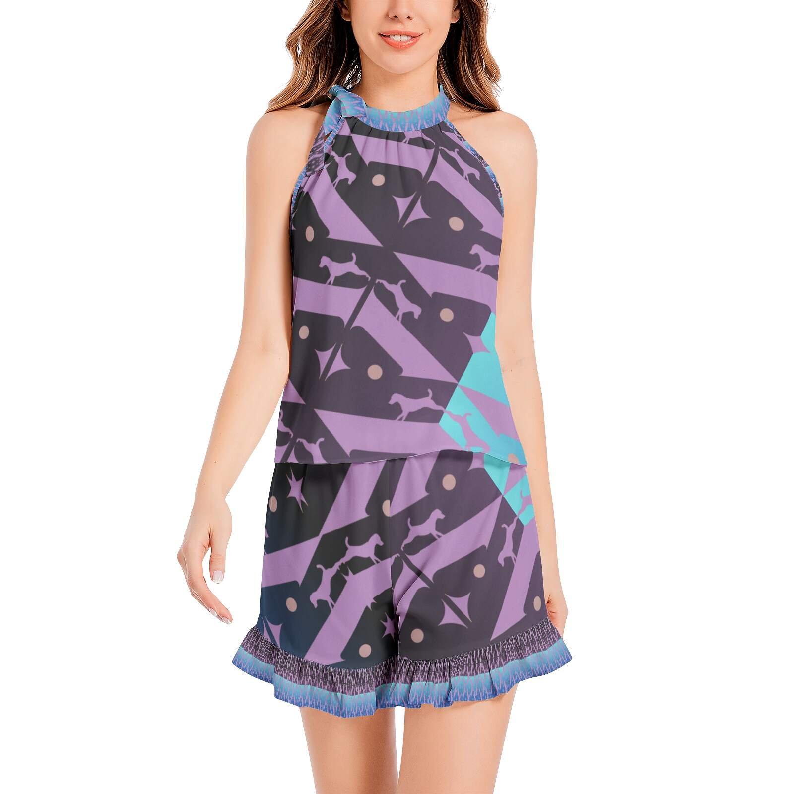 ArtDoggy™ Shorts & Halter Top Set (Blue / Purple) is Eligible for Returns