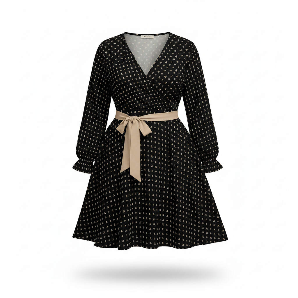 Experience elegance with the ArtDoggy™ V-neck Dress With Waistband | Brazilian Cream + Black. Designed to be dynamic yet tasteful, this dress features a chic folded V-neck that highlights your charm while keeping it classy. Crafted from a luxurious four-way stretch fabric it offers dependable comfort without compromising style. With its flattering regular fit and tailored waistband, this long sleeve beauty hugs in all the right places, making you feel as fabulous as you look. Whether you’re heading to a business meeting or a night out dancing, this versatile piece is ready to accompany you on every adventure. Own your day with effortless elegance—because when you feel great, anything is possible!
