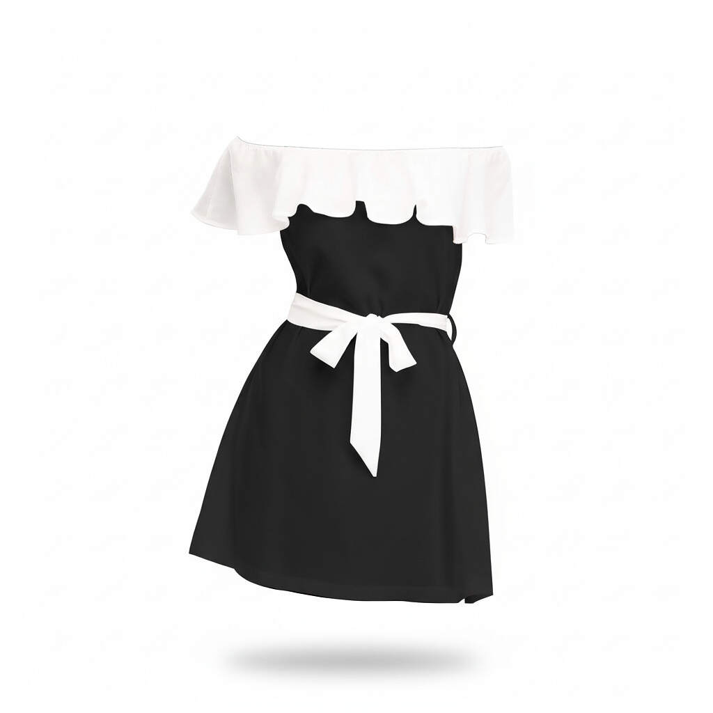 ArtDoggy™ Off-shoulder Ruffle Dress | Black + White is Eligible for Returns