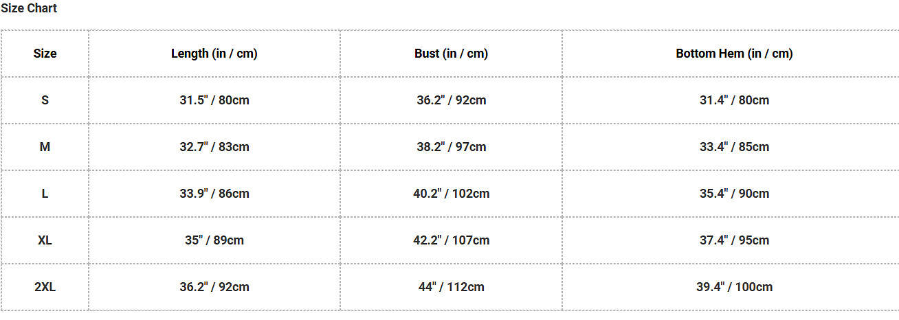 Bottom Hem (in / cm) |